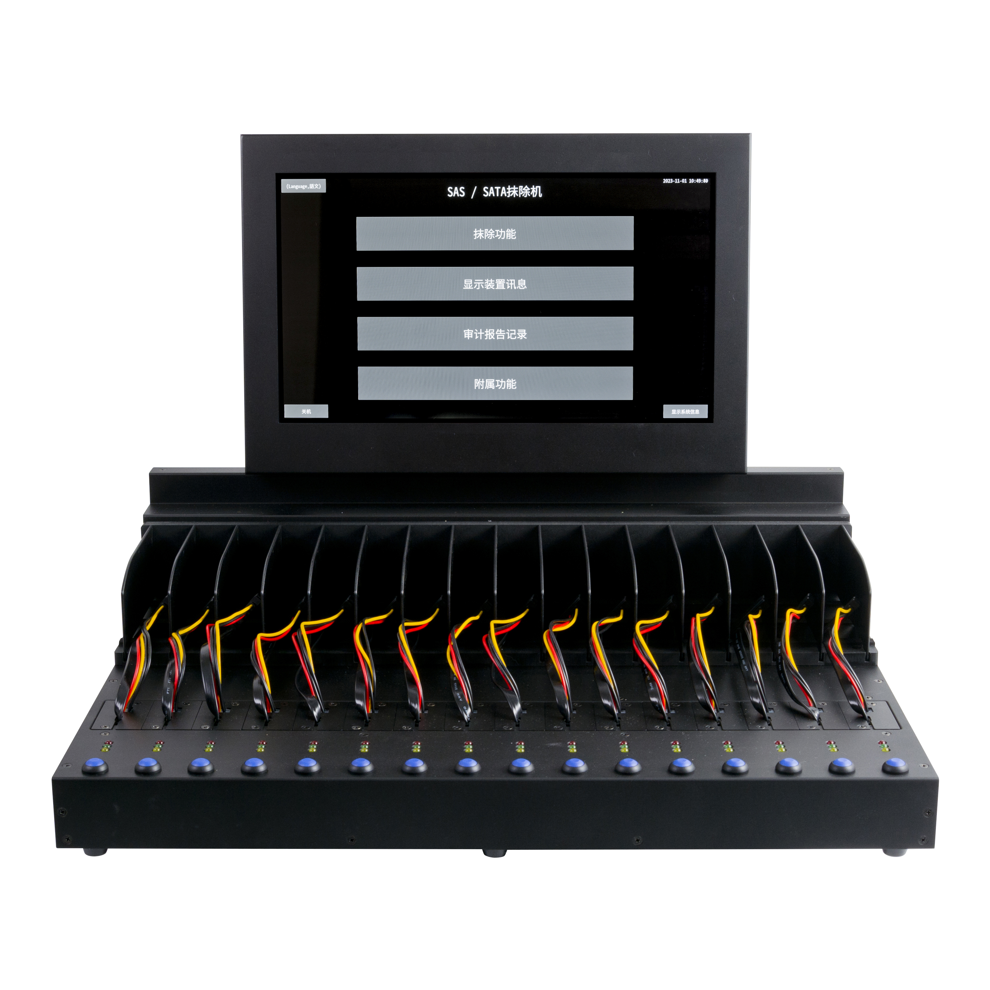 考量至每颗硬盘容量皆不相等,为了提升擦除的效率,可透过蓝色快抹键,从第二轮起,每一口皆口独立运作,可让16个硬盘独立执行资料擦除,完成之后不需等待其他颗硬盘。